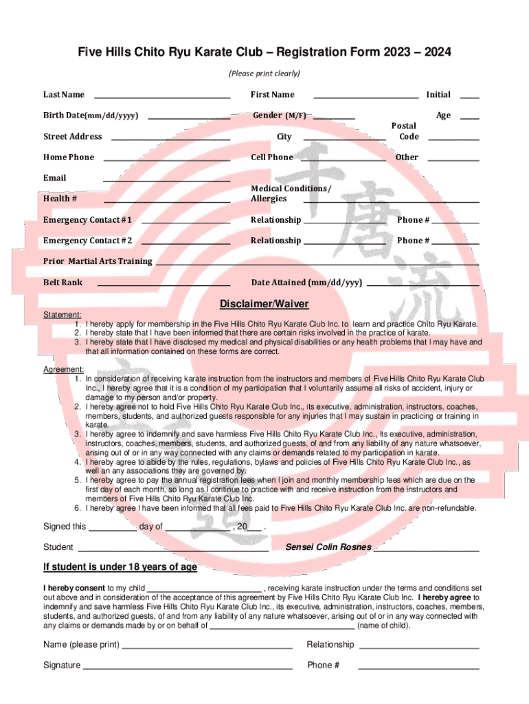 Get the free Five Hills Chito Ryu Karate Club Registration Form 2023 2024