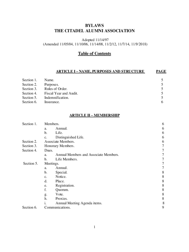 Get the free BYLAWS THE CITADEL ALUMNI ASSOCIATION