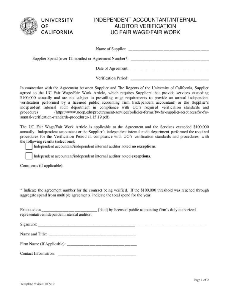 Get the free Verification Process for UC Fair Wage / Fair Work