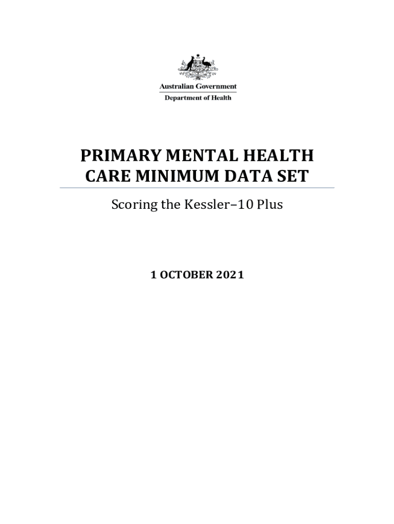 PRIMARY MENTAL HEALTH CARE MINIMUM DATA SET Scoring the Kessler10 Plus1 OCTOBER 2021Page 2 of 6 Version History DateDetails14 September 2016Initial Version9 February 2017Updated Version including