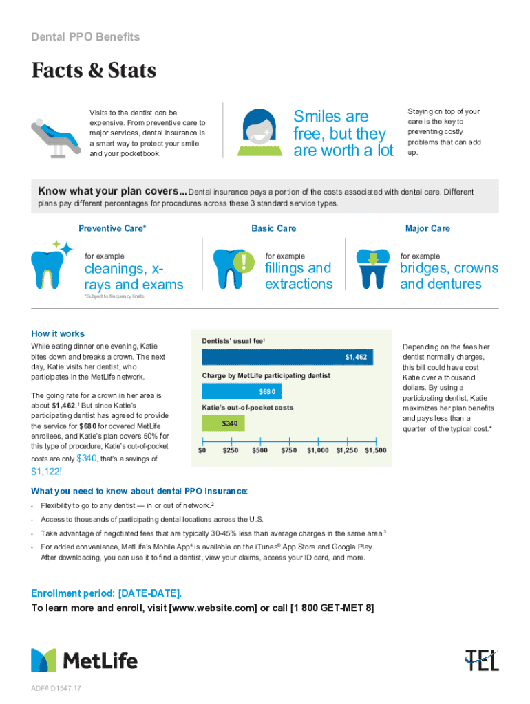 Dental PPO BenefitsFacts & Stats Smiles are free, but they are worth a lotVisits to the dentist can be expensive. From preventive care to major services, dental insurance is a smart way to protect your smile and your pocketbook.Staying on top of your care is the key to preventing costly problems that can add up.Know what your plan covers... Dental insurance pays a portion of the costs associated with dental care. Different plans pay different percentages for procedures across these 3 standard...