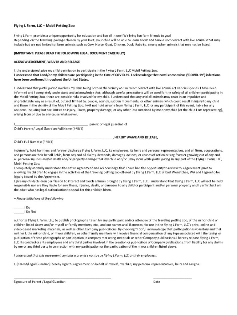 Flying L Farm, LLC Mobil Petting Zoo Flying L Farm provides a unique opportunity for education and fun all in one! We bring fun farm friends to you! Depending on the traveling package chosen by your