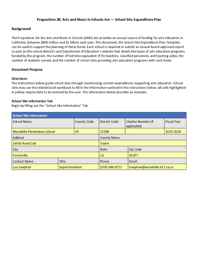 Get the free Proposition 28 Arts and Music in Schools Funding