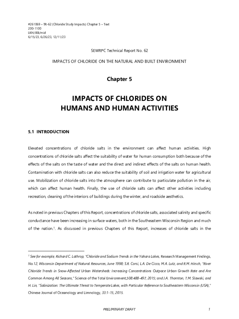 6/15/23, 6/26/23, 12/11/23SEWRPC Technical Report No. 62IMPACTS OF CHLORIDE ON THE NATURAL AND BUILT ENVIRONMENTChapter 5IMPACTS