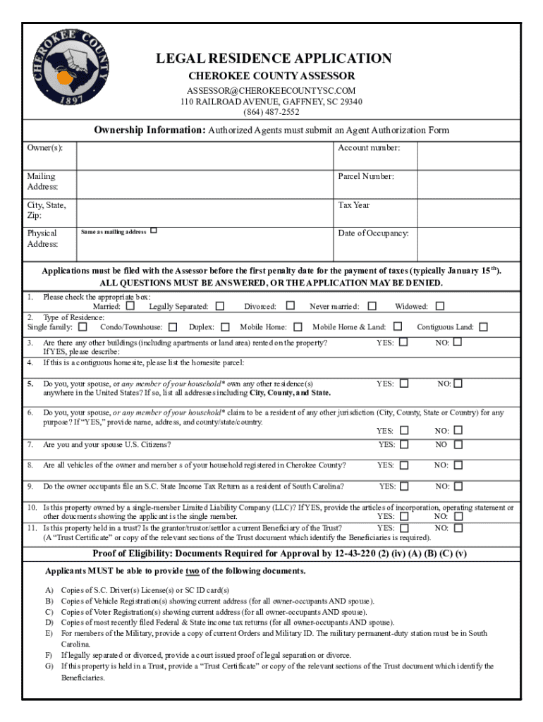 Get the free LEGAL RESIDENCE APPLICATION - Cherokee County