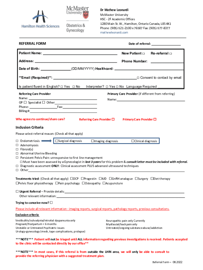 Get the free NEW referral form Aug 2022.docx