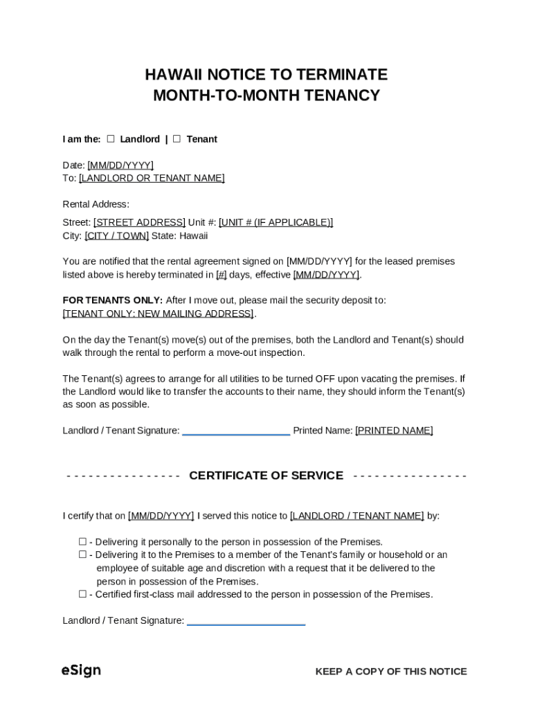 Free Hawaii Termination of Lease Agreement template instructions