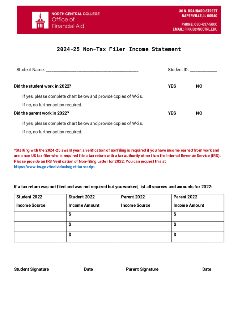 Get the free Non-Tax Filing Statement -Student - 2024-2025. ...