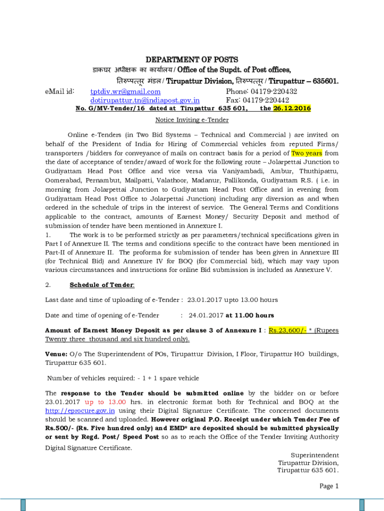 Get the free DEPARTMENT OF POSTS eMail id: tptdiv.wrgmail.com Phone ...