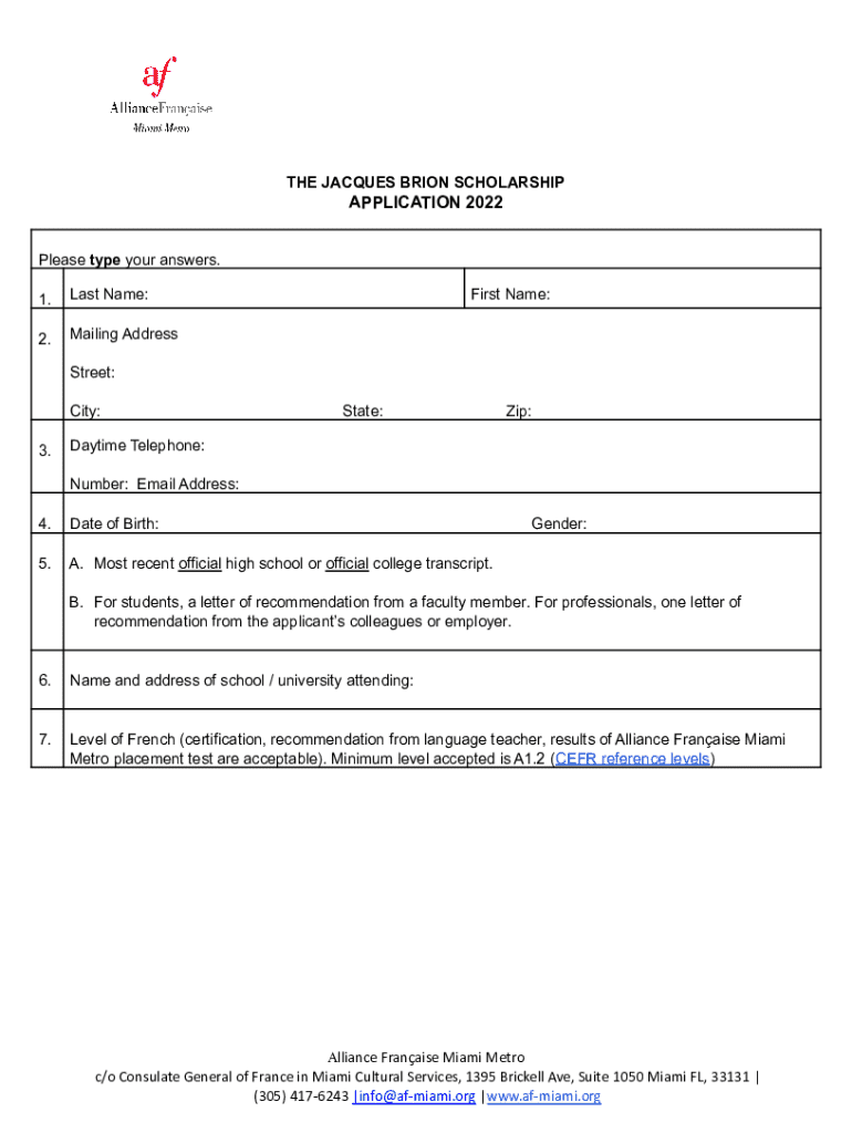 The Brion Scholarship application form is a vital document that serves as your first impression to the selection committee. Completing it meticulously is crucial as it directly influences your chances of being awarded the scholarship. The form requires various supporting documents to establish your qualifications and to substantiate your application.