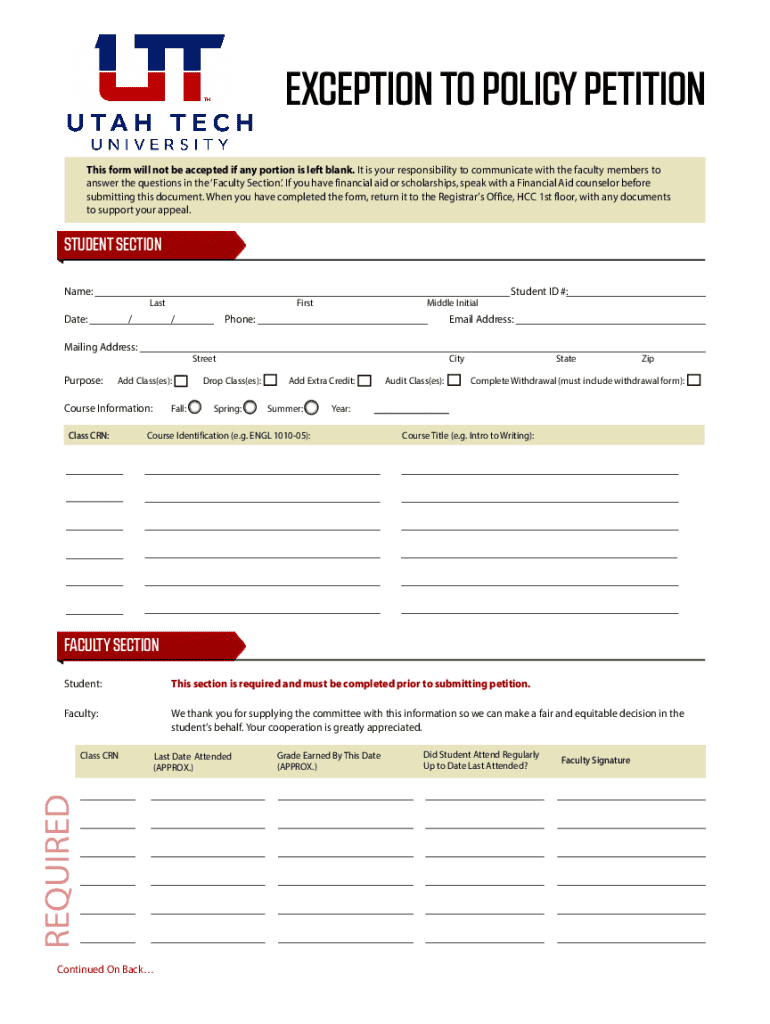 The Policy Exception Committee plays a crucial role in academic institutions, including Utah Tech, by providing a framework for assessing and approving exceptions to established policies. This committee is essential in ensuring that the academic integrity and operational standards of the institution are upheld while offering flexibility to students and faculty in unique circumstances.
