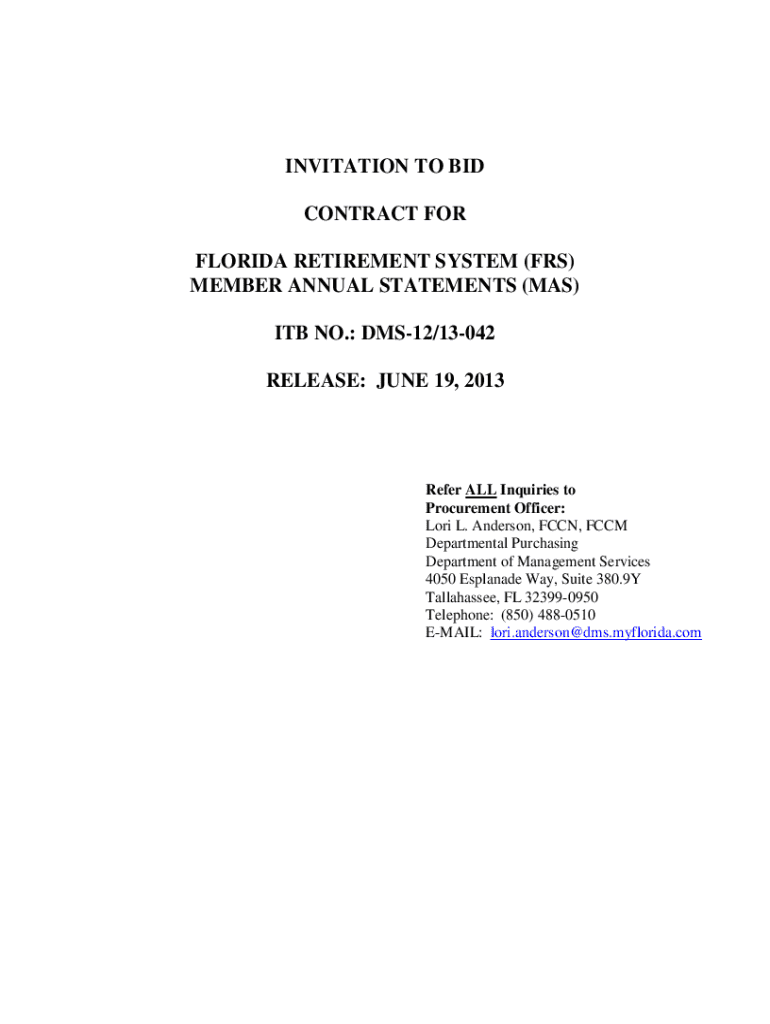 Get the free invitation to bid contract for florida retirement system (frs) ...