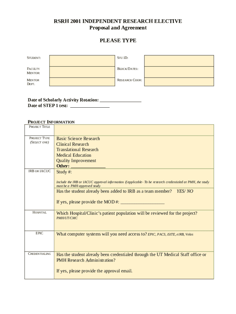 Filling out the Research 2001 Elective Proposal Form can seem daunting, but breaking it down into manageable steps can facilitate the process. Here's a guide to ensure you cover all necessary aspects.