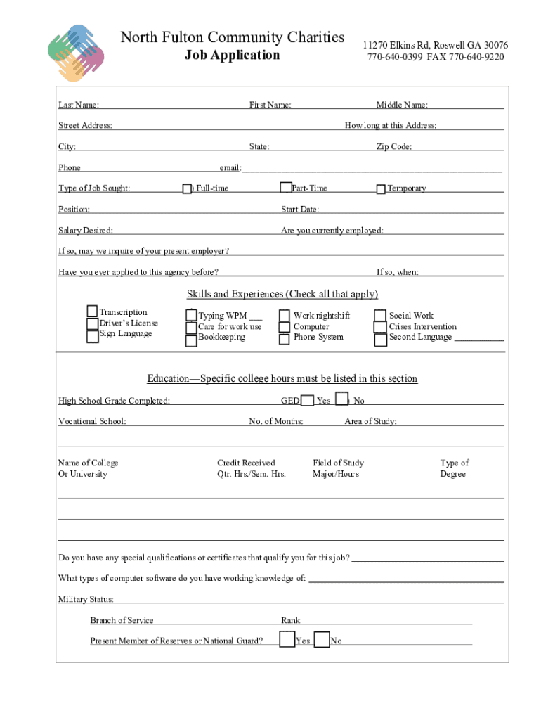 The North Fulton Community Charities Form serves a vital purpose in facilitating access to the services NFCC offers. This form is designed to gather necessary information from individuals seeking assistance, which in turn helps NFCC better tailor its support to meet community needs.