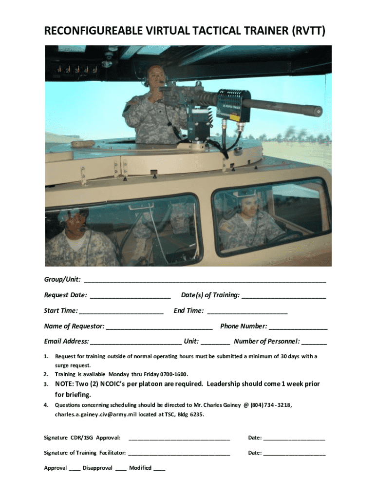 Understanding the structure of the reconfigureable virtual tactical trainer form is crucial for effective filling. The form comprises various sections designed to capture essential information about the training exercises, participant details, and specific objectives.