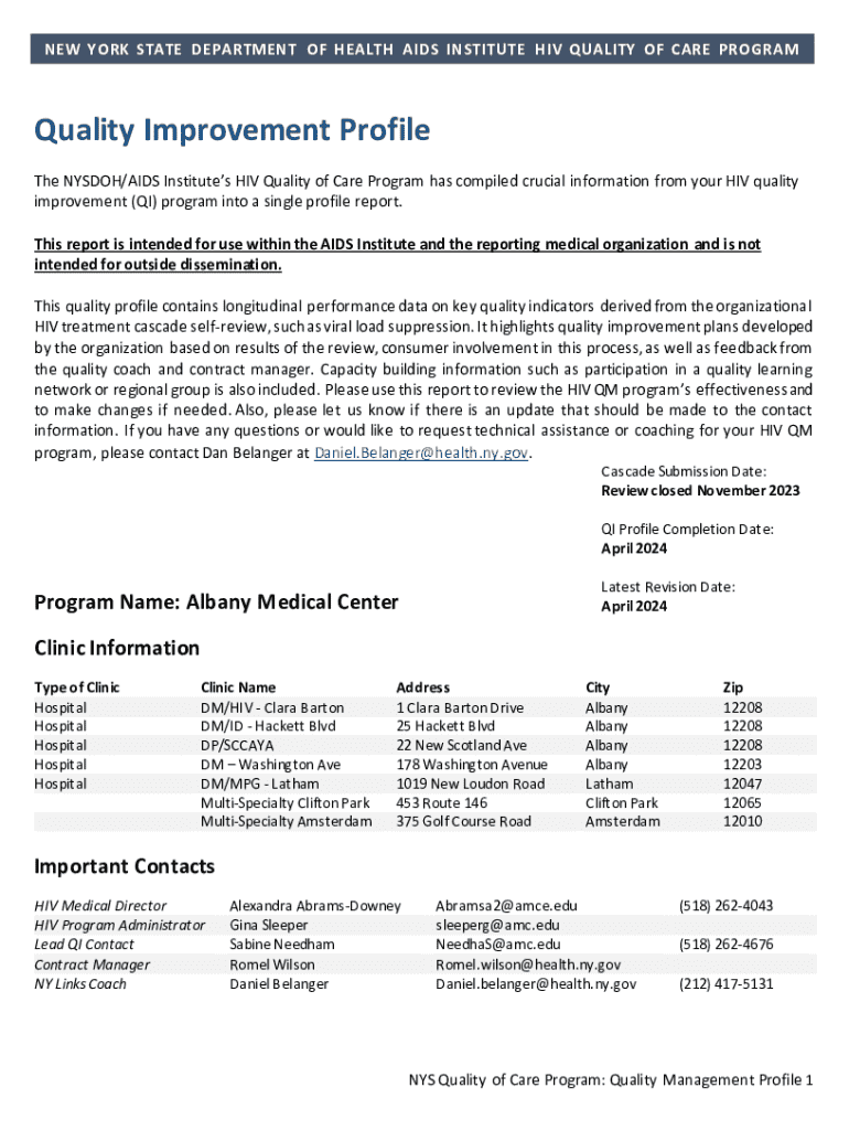 NEW YORK STATE DEPARTMENT OF H EALTH AIDS INSTITUTE H IV QUALITY OF CARE PROGRAMQuality Improvement Profile The NYSDOH/AIDS Institutes HIV Quality of Care Program has compiled crucial information