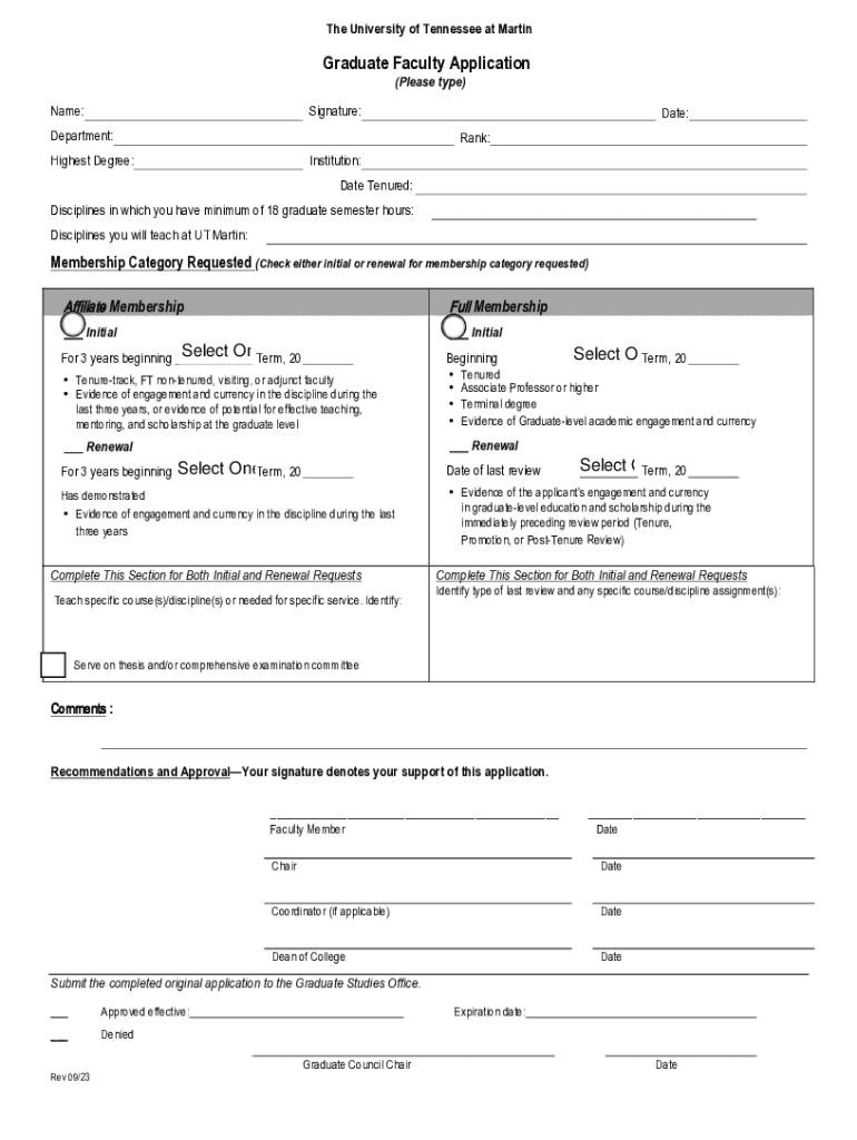 The University of Tennessee at MartinGraduate Faculty Application (Please type)Name:Signature:Date:Department:Rank:Highest Degree:Institution: Date Tenured:Disciplines in which you have minimum of