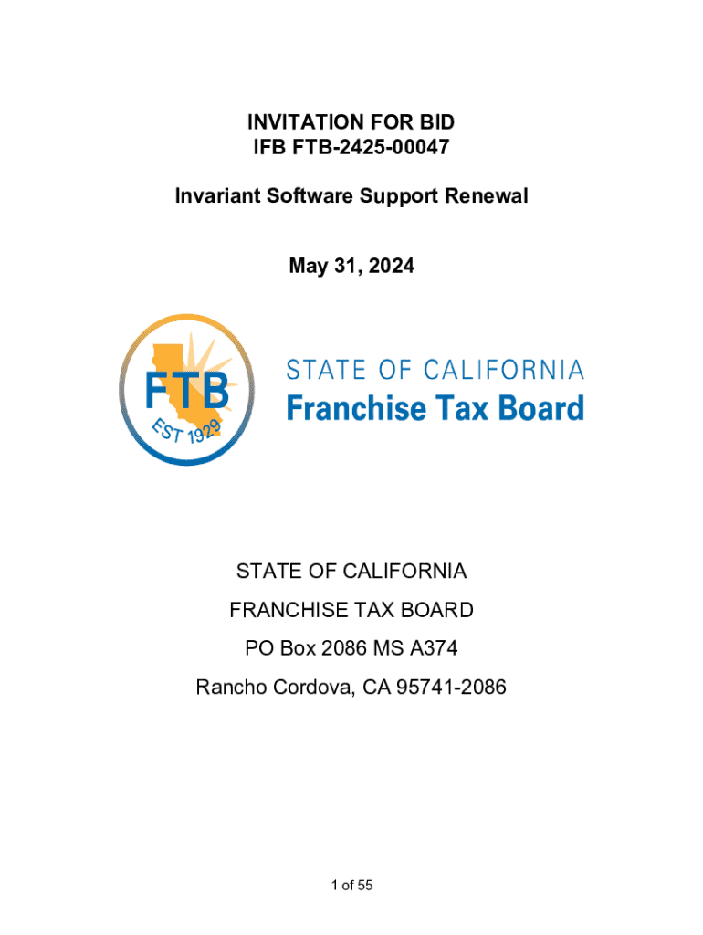 Get the free INVITATION FOR BID IFB FTB-2425-00047 Invariant ...