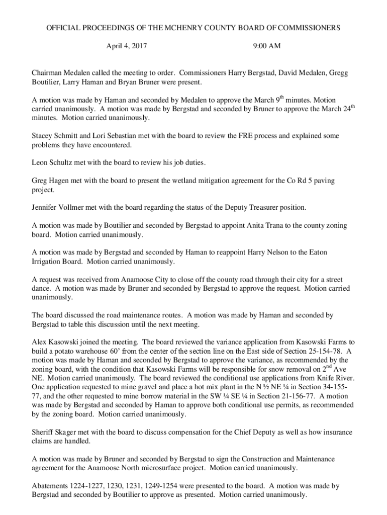 Get the free A motion was made by Bergstad and seconded by Bruner to approve the March 24th