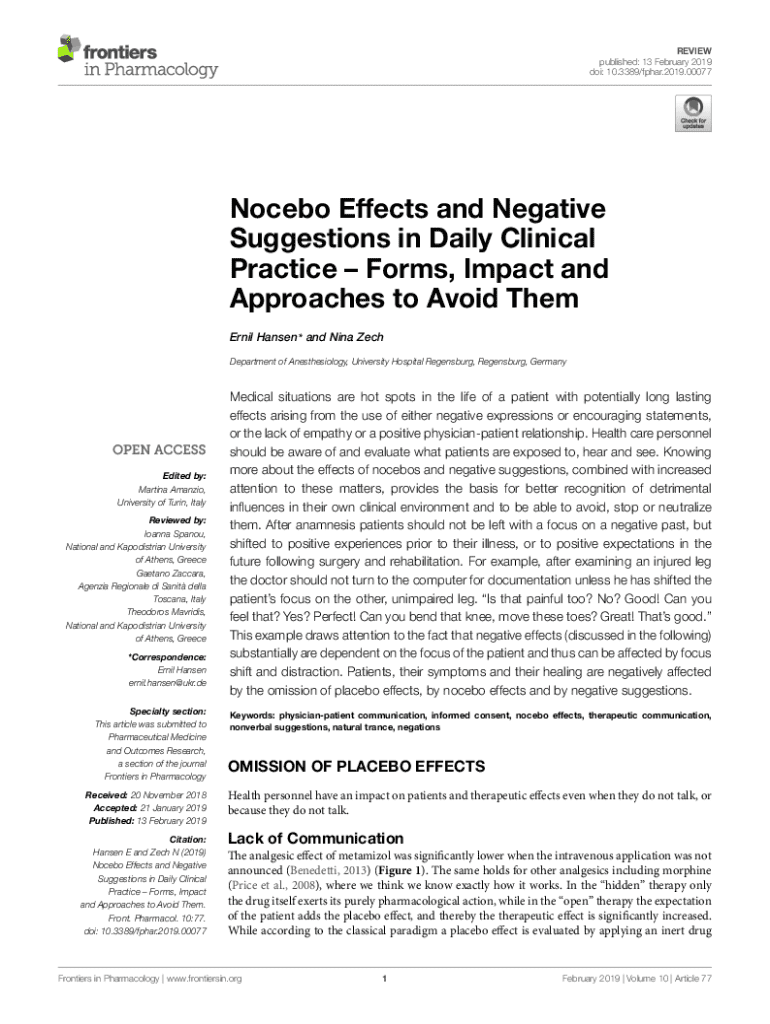 Get the free Nocebo Effects and Negative Suggestions in Daily Clinical PracticeForms, Impact and ...
