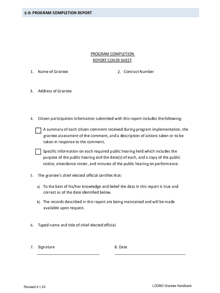 Get the free E-6 Program Completion Report