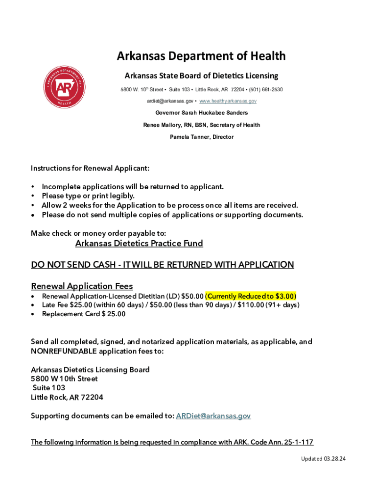 Get the free New Application - Arkansas Department of Health - healthy arkansas