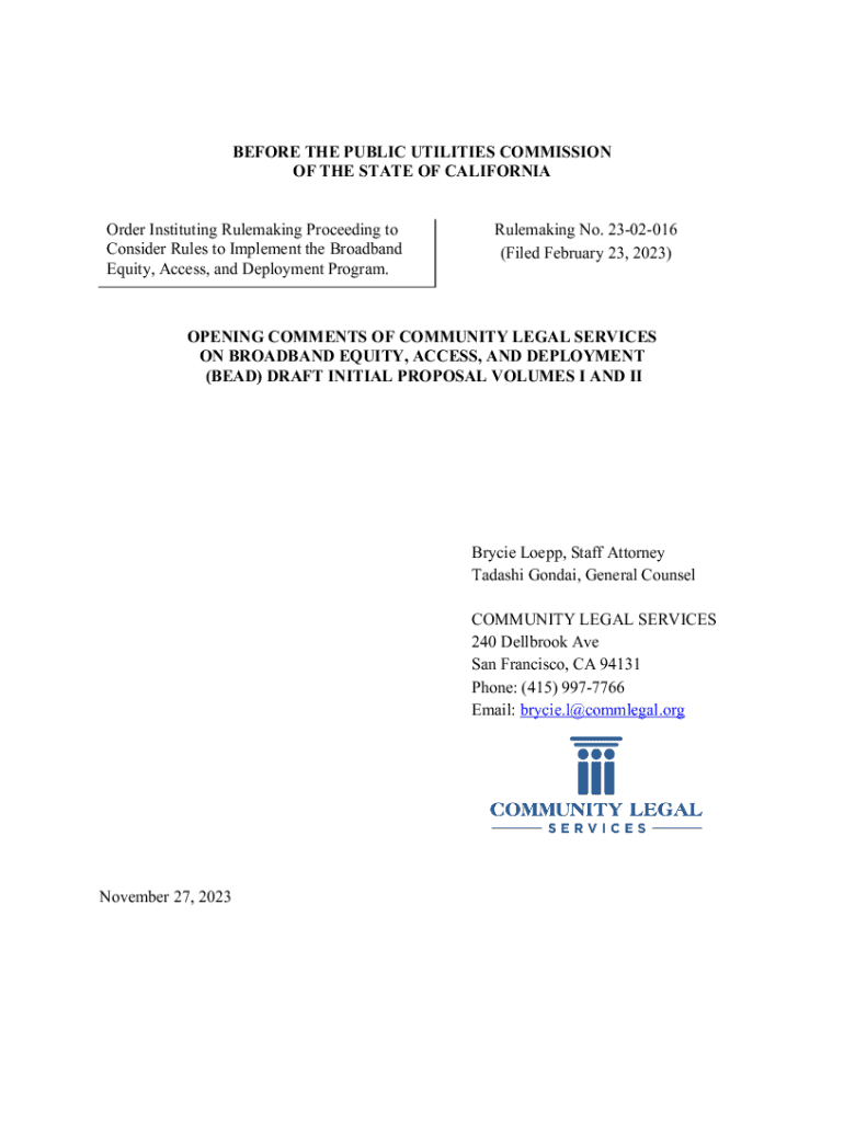BEFORE THE PUBLIC UTILITIES COMMISSION OF THE STATE OF CALIFORNIA Order Instituting Rulemaking Proceeding to Consider Rules to Implement the Broadband Equity, Access, and Deployment Program.Rulemaking