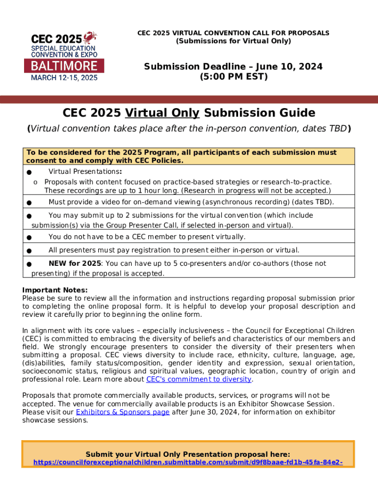- Get the Good news! The #CEC2025 Call for Proposals has been ... form in PDFfiller’s library.