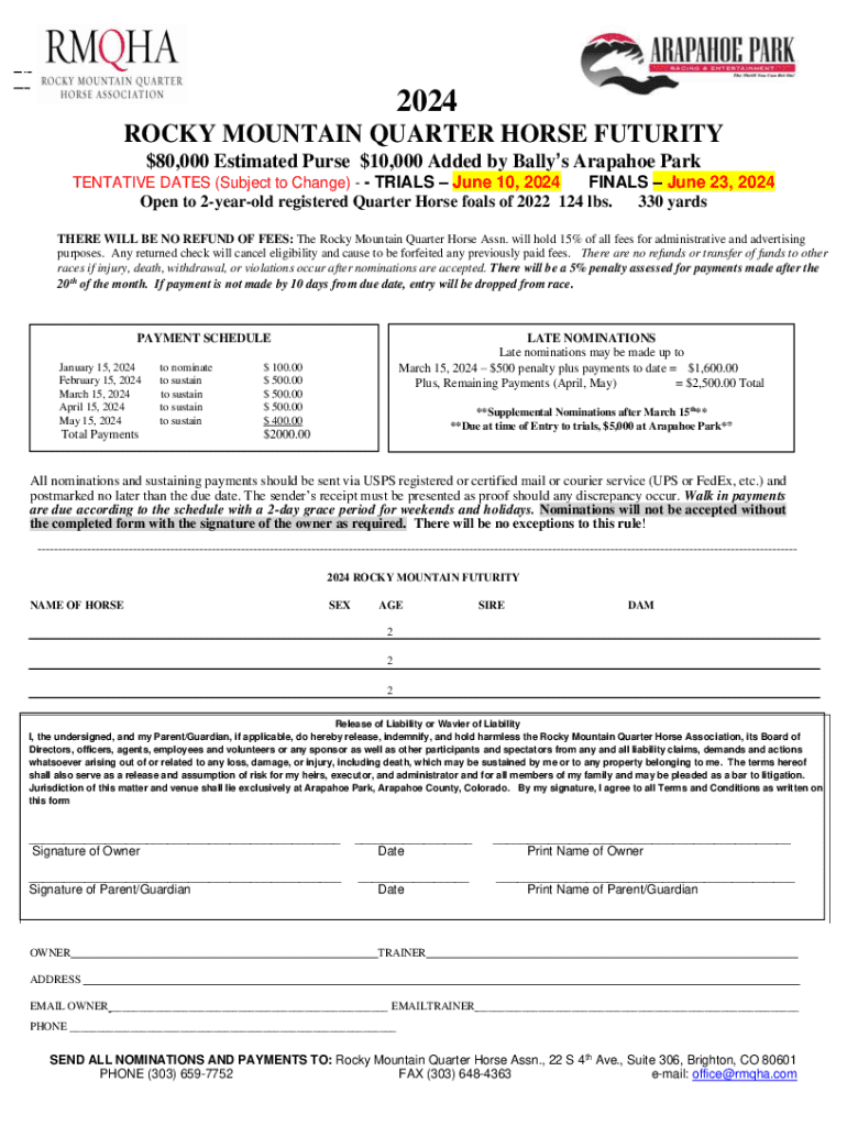 Get the free Nominations are due for Quarter Horse Futurities ...