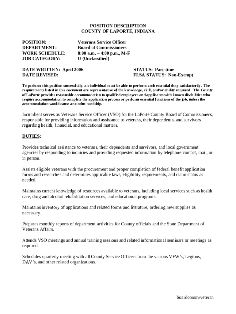 Instructions for the form Veterans Services - LPC - La Porte County, Indiana