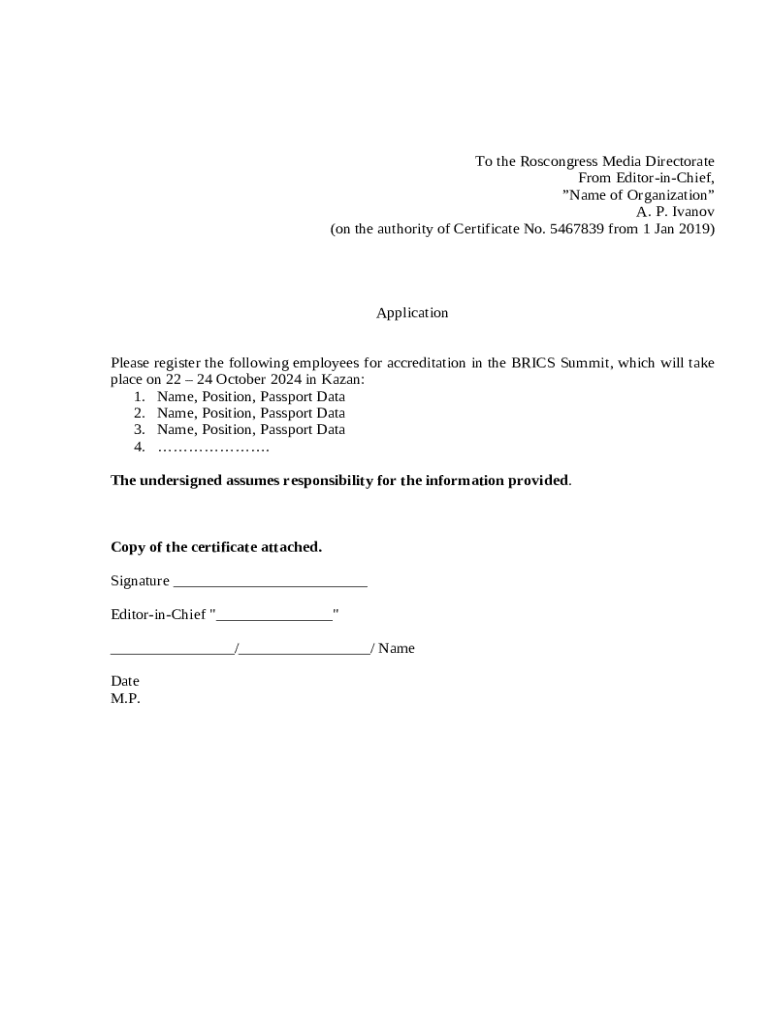 The BRICS Civil Forum Registration is Open is a fillable form in MS Word extension that should be submitted to the specific address in order to provide certain info. It has to be completed and signed, which may be done in hard copy, or by using a certain software e. g. PDFfiller. This tool allows to complete any PDF or Word document directly in your browser, customize it depending on your purposes and put a legally-binding electronic signature. Once after completion, the user can easily send the BRICS Civil Forum Registration is Open to the appropriate recipient, or multiple recipients via email or fax. The editable template is printable as well from PDFfiller feature and options presented for printing out adjustment. Both in electronic and in hard copy, your form will have got organized and professional look. It's also possible to turn it into a template for further use, without creating a new file from scratch. All that needed is to customize the ready template.