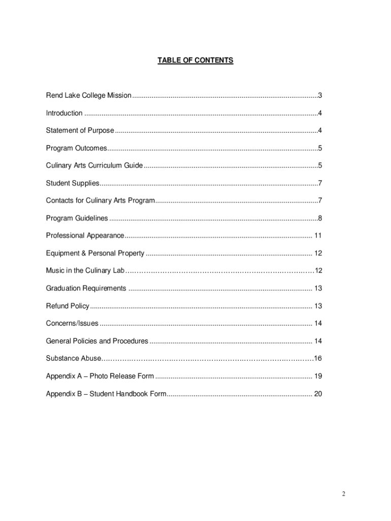Get the free TABLE OF CONTENTS Rend Lake College Mission ...