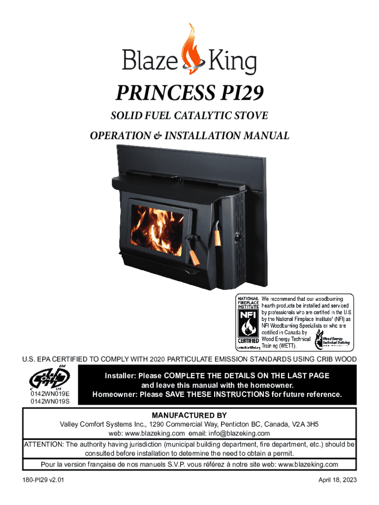 Get the free Blaze King PRINCESS PI29 Operation & Installation Manual