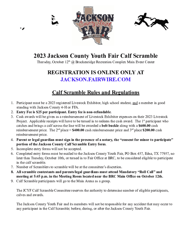 Get the free 2023 JCYF Online Calf Scramble Entry Form.docx