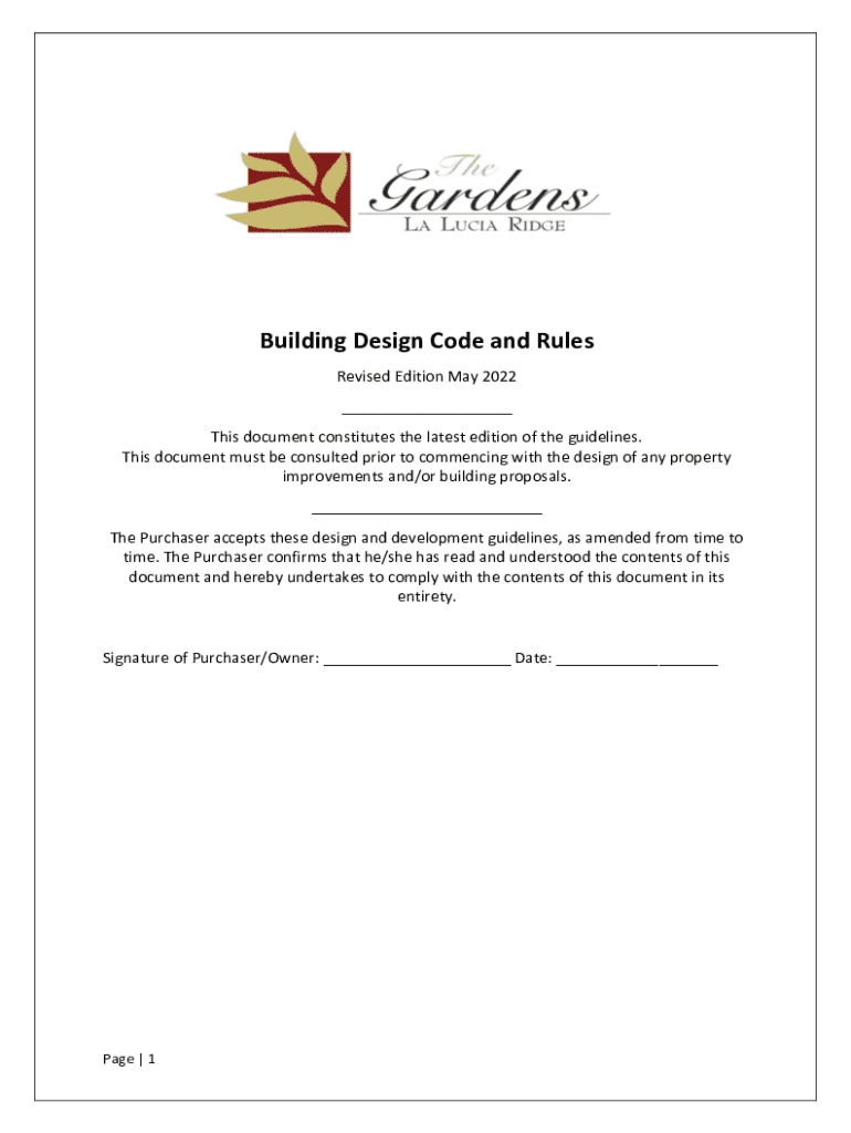 Building Design Code and Rules Revised Edition May 2022 ___ This document constitutes the latest edition of the guidelines. This document must be consulted prior to commencing with the design of any property improvements and/or building proposals. ___ The Purchaser accepts these design and development guidelines, as amended from time to time. The Purchaser confirms that he/she has read and understood the contents of this document and hereby undertakes to comply with the contents of this...