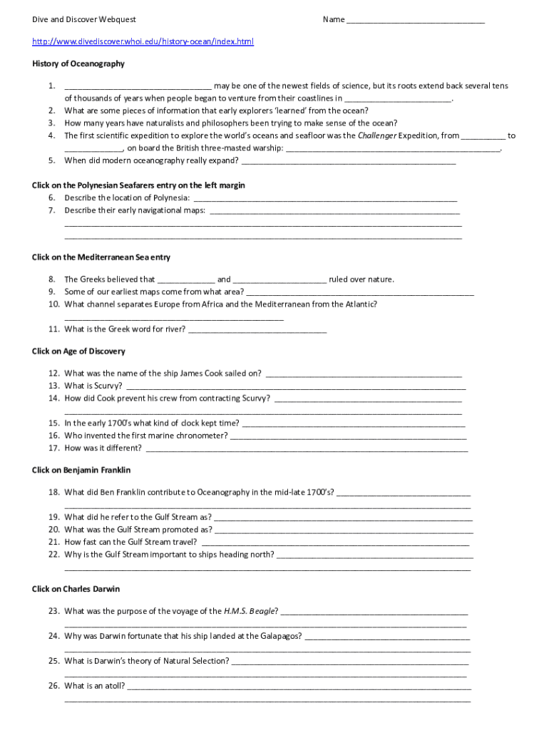Dive and Discover WebquestName ___http://www.divediscover.whoi.edu/historyocean/index.html History of Oceanography 1. 2. 3. 4. 5.___ may be one of the newest fields of science, but its roots extend