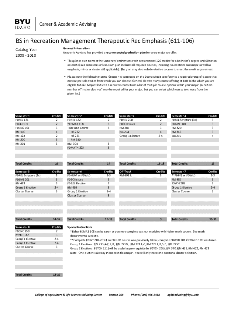 Get the free BS in Recreation Management Therapeutic Rec Emphasis (611-106)