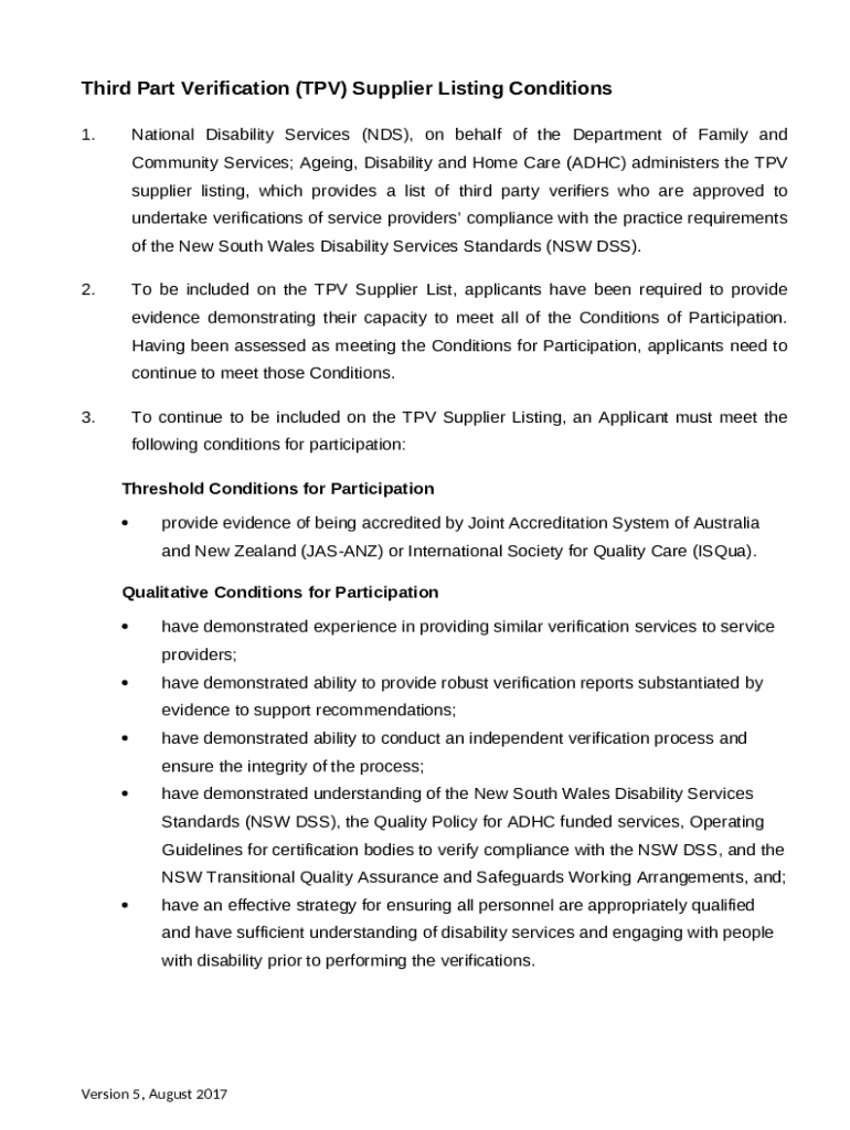 Third Part Verification (TPV) Supplier Listing Conditions template instructions