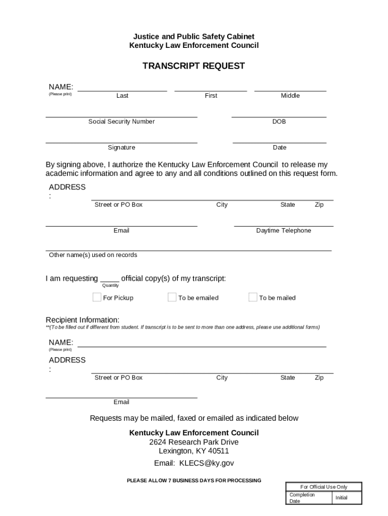 By signing above, I authorize the Kentucky Law Enforcement Councilto release my academic ination and agree to any and all conditions outlined on this request template instructions