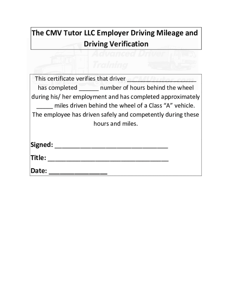 Get the free The CMV Tutor LLC Employer Driving Mileage and ...
