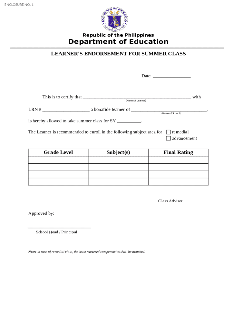 Endorsement For Summer Remedial ClassesPDFYouth word template: frequently asked questions