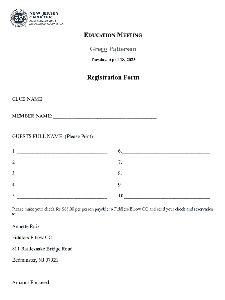 NJ CMA Education Meeting Tuesday, April 18, 2023,