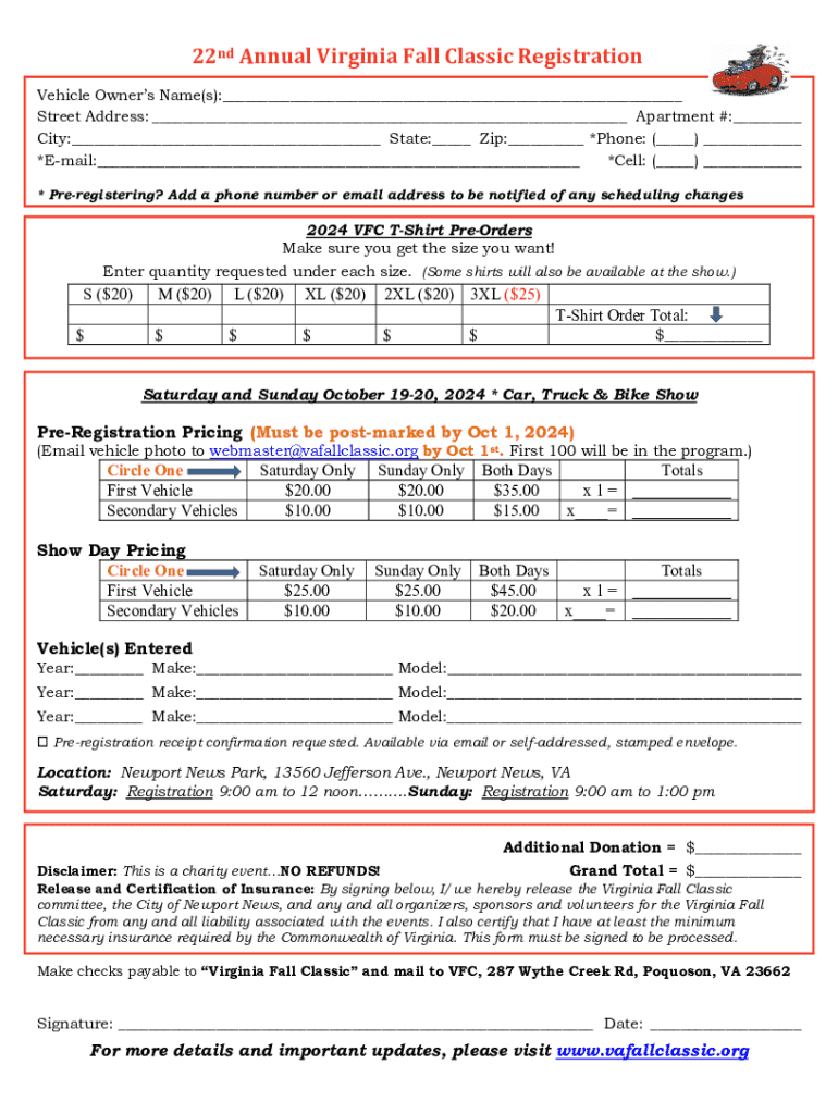 Participants should also be aware of eligibility requirements to compete in the Virginia Fall Classic. Understanding these prerequisites before completing forms can prevent unnecessary complications.
