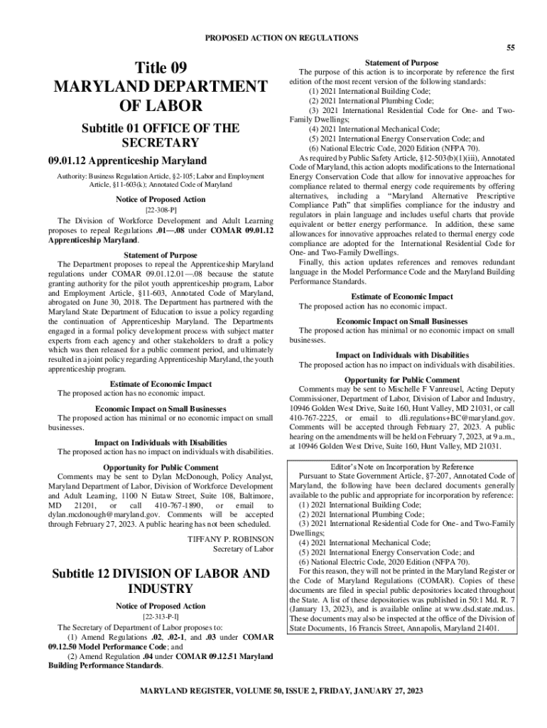 Get the free The Maryland Department of Labor Issues Proposed Maryland ...