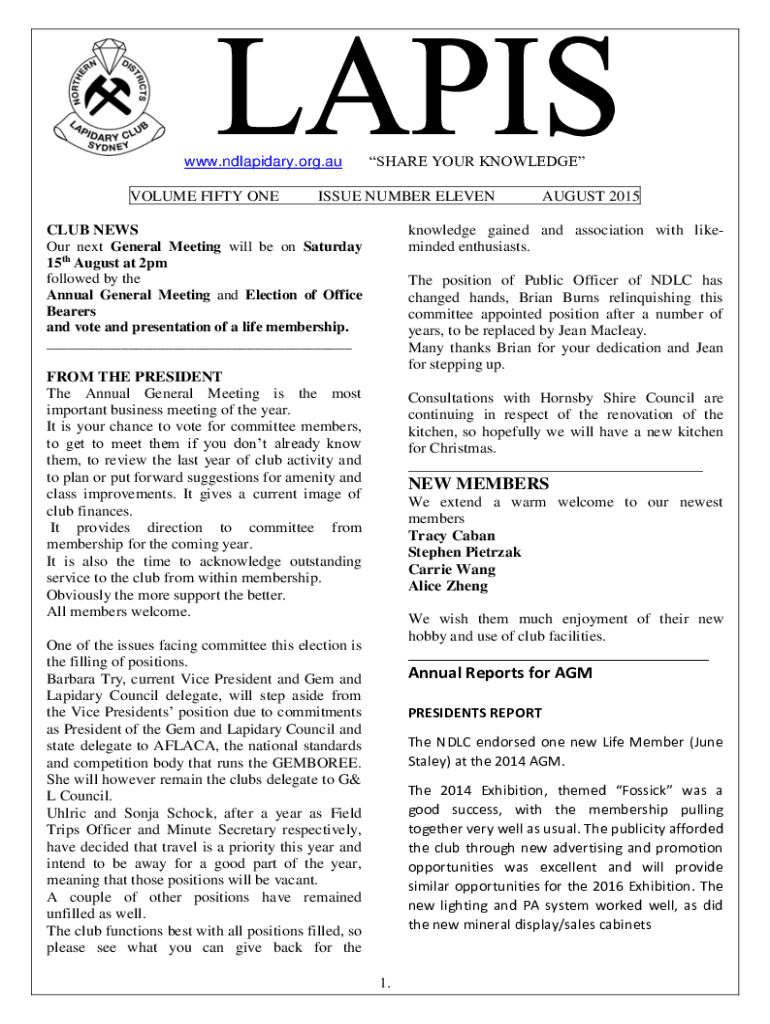 Get the free NEW MEMBERS Annual Reports for AGM - ndlapidary org
