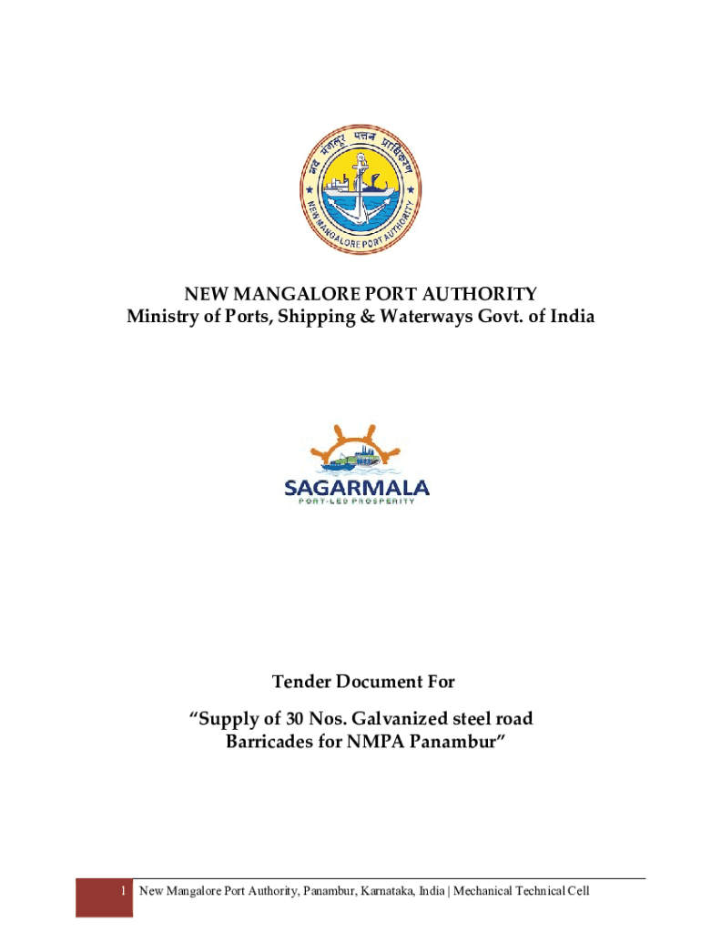 Ministry of Ports, Shipping & Waterways Govt. of IndiaTender Document For