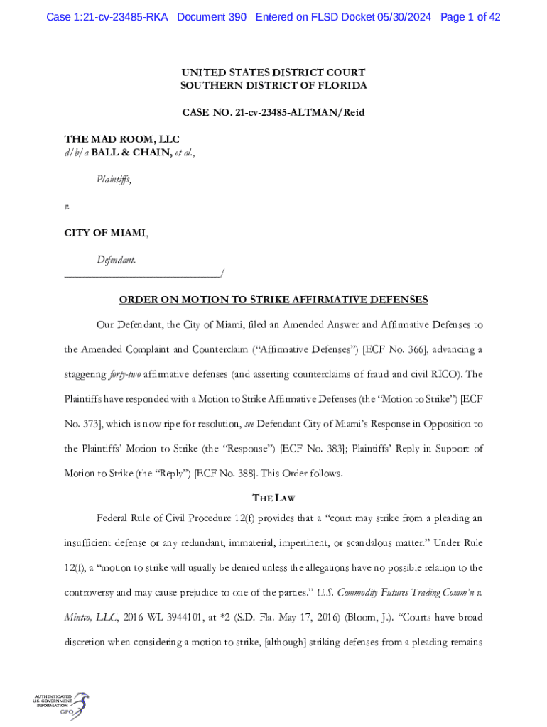 Get the free 21-23485 - The Mad Room LLC et al v. The City of Miami
