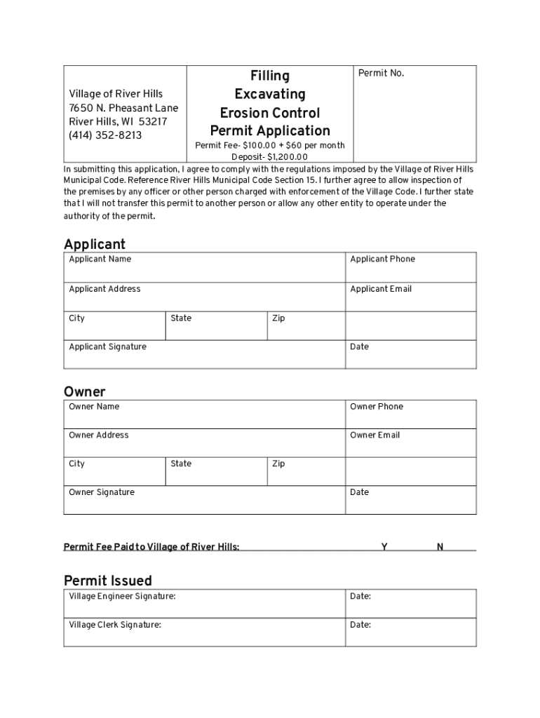Get the free Filling Excavating Erosion Control Permit Application