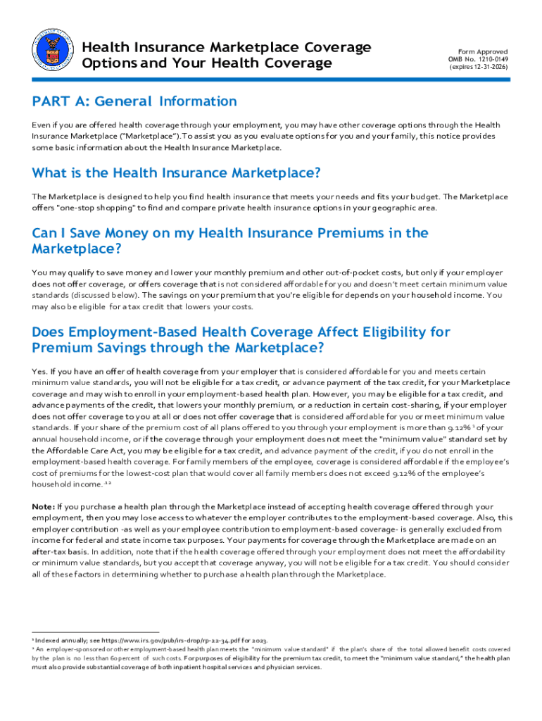 Health Insurance Marketplace Coverage Options and Your Health CoverageForm Approved OMB No. 12100149 (expires 12312026)PART A: General Information Even if you are offered health coverage through your