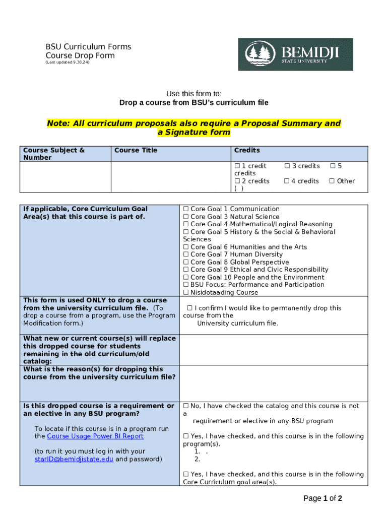 What is BSU Curriculum s 4 Course Drop Form?